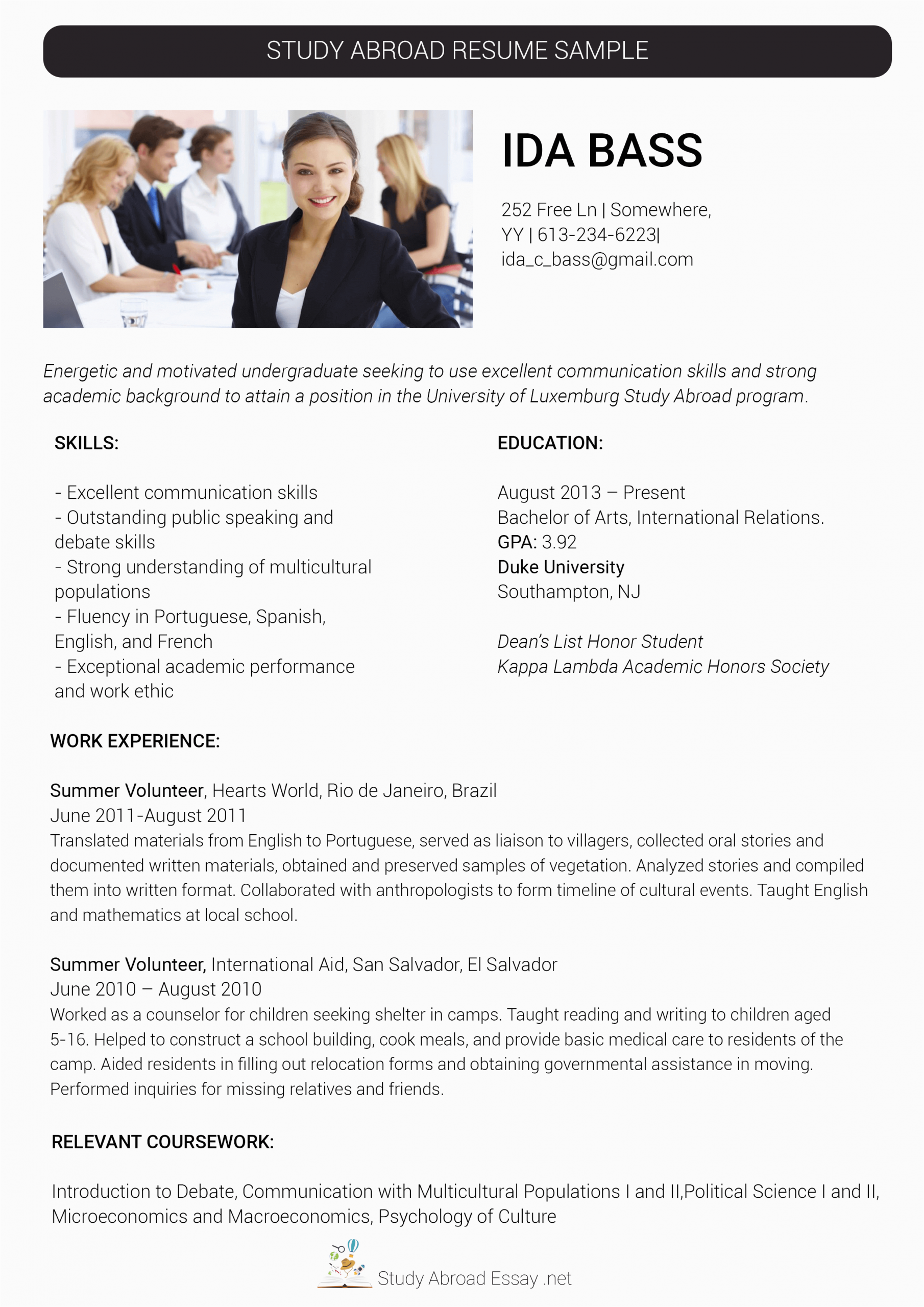 Sample Resume Format Applying Abroad