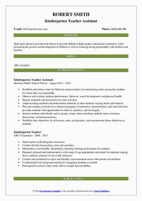 You can acquire several rotate ideas and examples of how to format your resume with the encourage of a sample resume for kindergarten teacher assistant, and if you choose to utilize this method, there are also many ways to go about feign so.