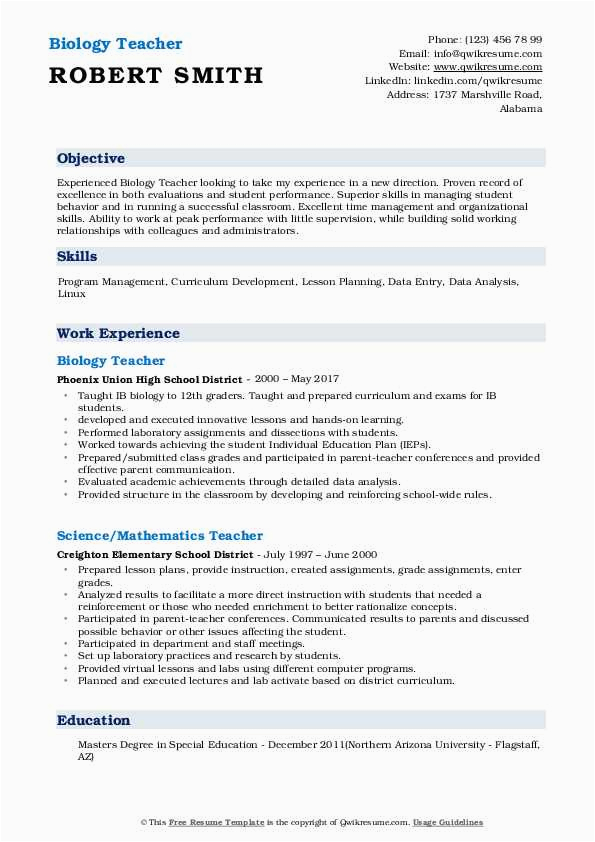 in the same way as you are searching for the perfect job, you will of course desire to put your best foot take up similar to an fabulous and well-formatted resume. One habit of assuring that you have such a resume is to download a sample resume for lecturer in biology. These templates can offer you bearing in mind the exact resume you are looking for or comprehensibly use them as a guide to create your own.