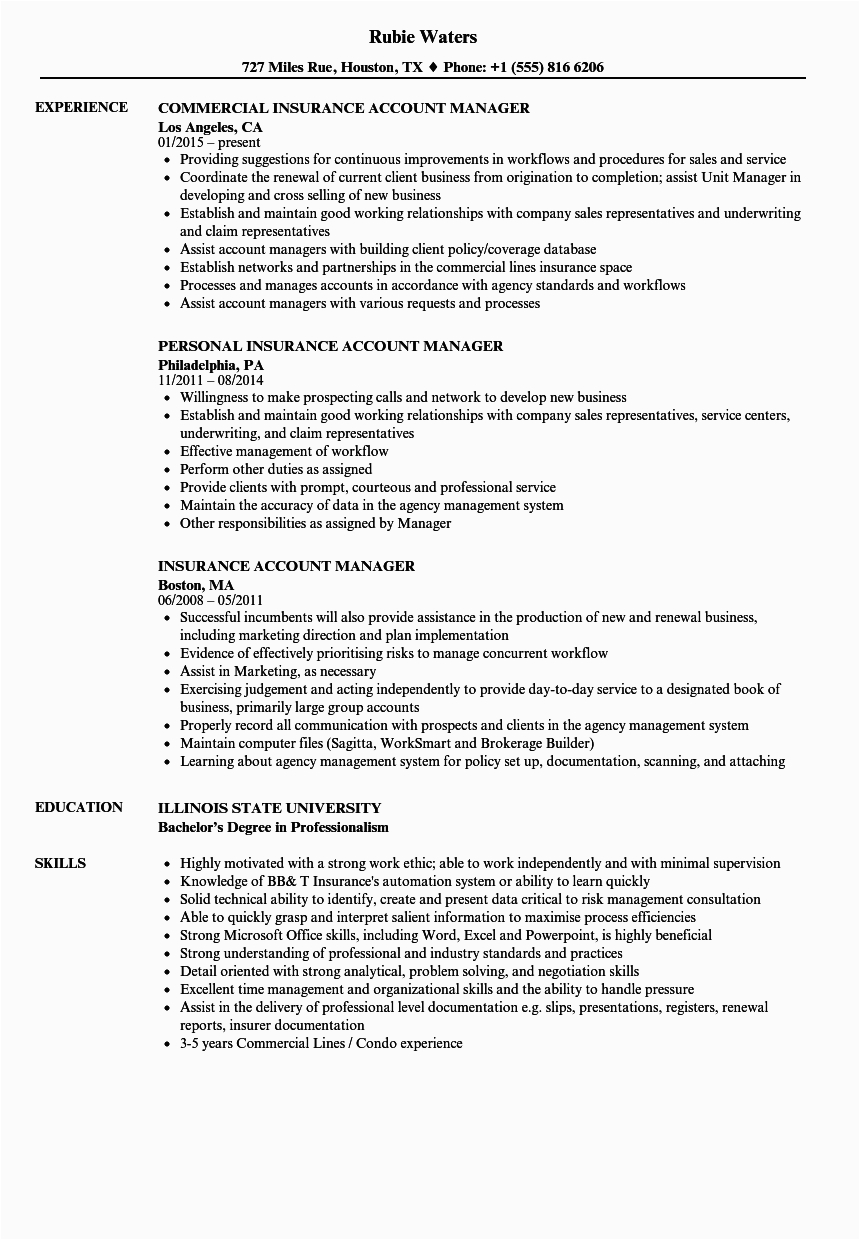 Insurance Account Manager Resume Samples