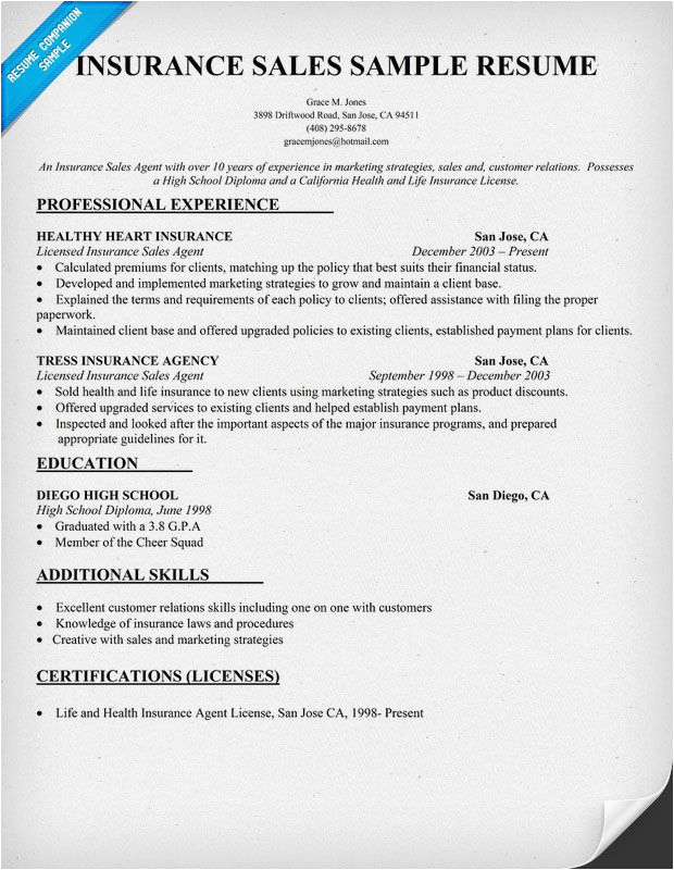 Insurance Sales Resume Sample resume panion