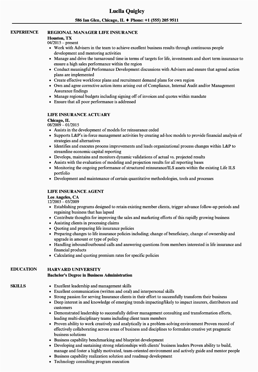 Life Insurance Resume Samples