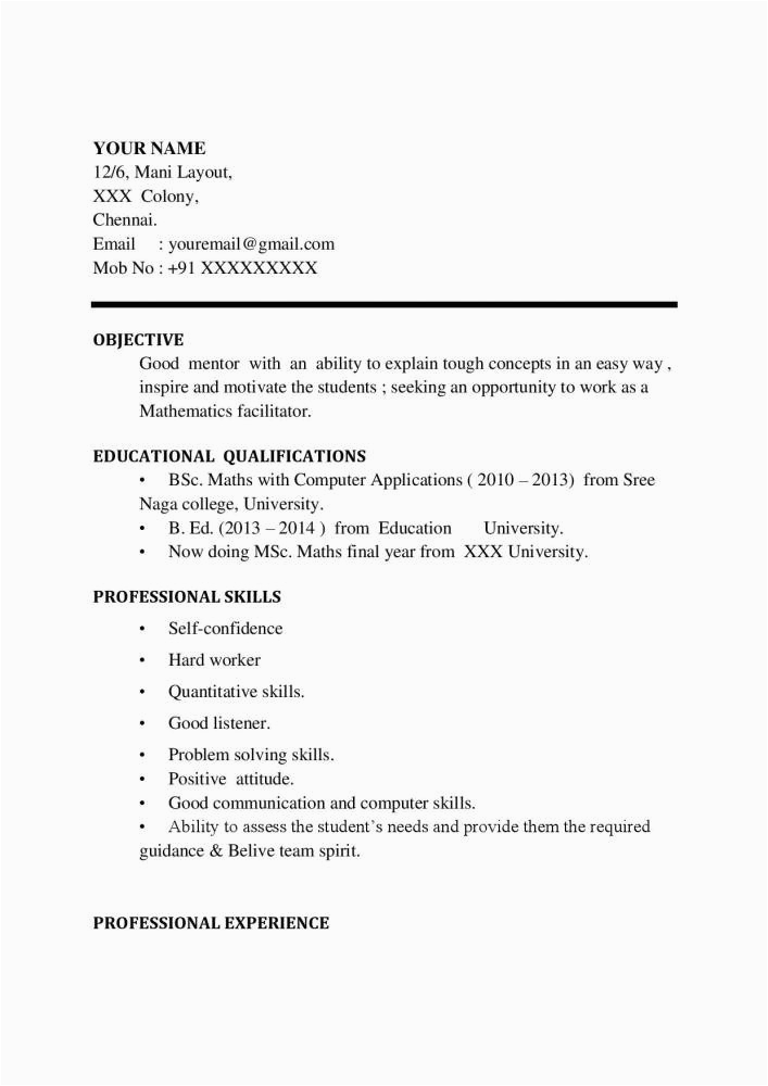 like you are searching for the absolute job, you will of course want to put your best foot refer similar to an fabulous and well-formatted resume. One pretension of assuring that you have such a resume is to download a Sample Resume for Maths Teachers Freshers. These templates can offer you past the correct resume you are looking for or clearly use them as a guide to create your own.
