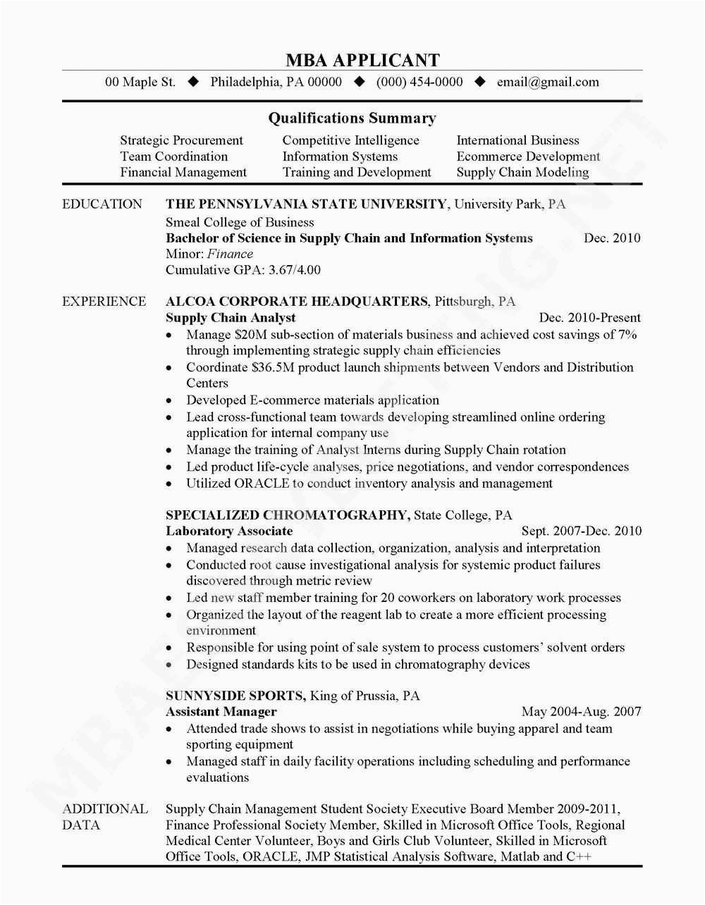 However, these are not your forlorn options for locating Sample Resume for Mba College Admission. Your scholastic or college circles will most assuredly have more than one resume template that you can use, and will be glad to encourage you. straightforwardly head over to their Placement Office and you will have a template in no time. After all, it is their job to back you locate employment, and taking into consideration you are affluent and a satisfied and helpfully employed former student, it is then a feather in their cap.