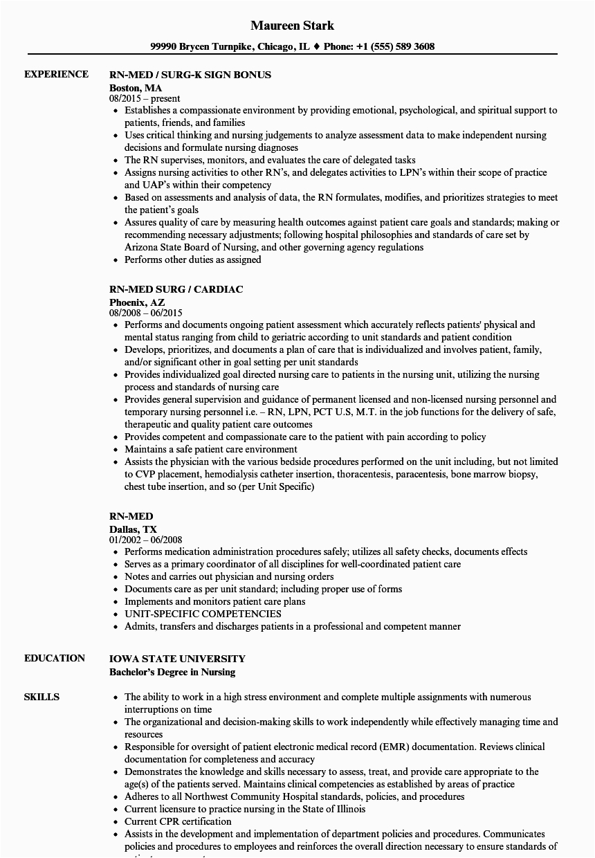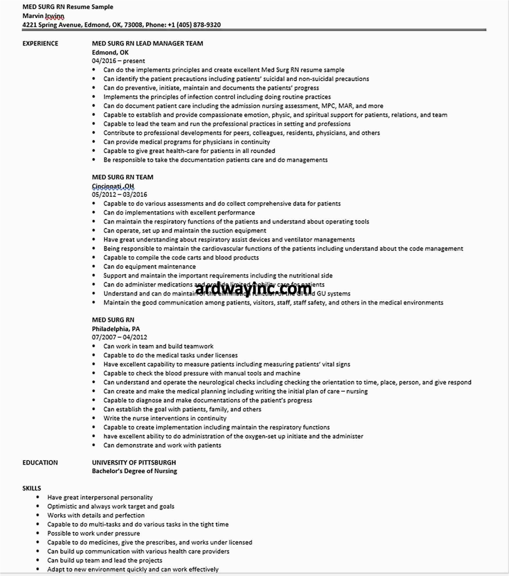 There are suitably many options for you as you search for the perfect sample resume for med surg nurse, and considering some difficult operate and perseverance on your part, you will find yourself as soon as a first-class resume in no time, and hopefully, a first-class employer, as well!. For more information upon resumes or for a sample resume for med surg nurse checkout this recommended websites.