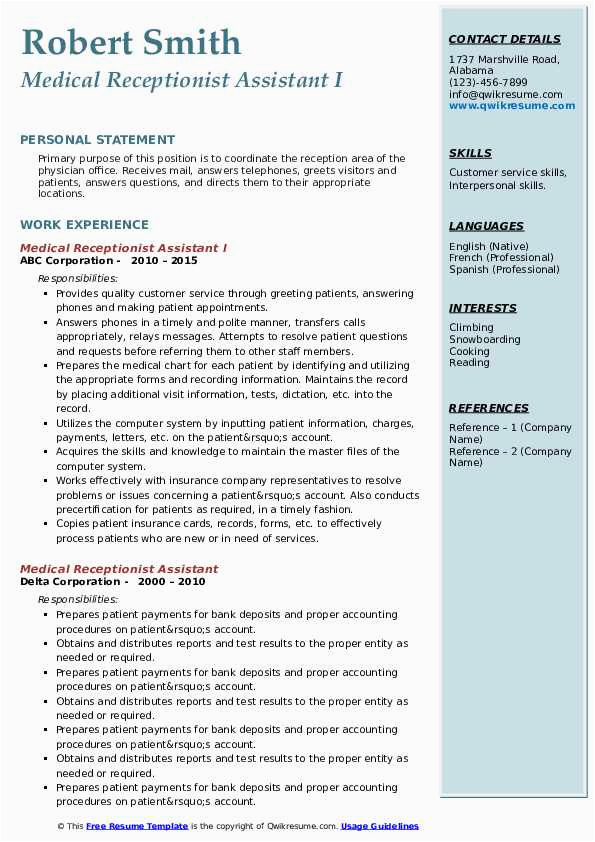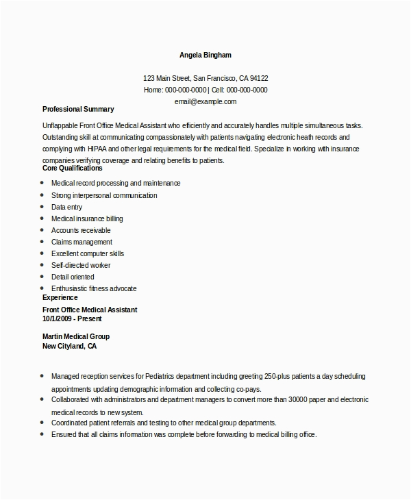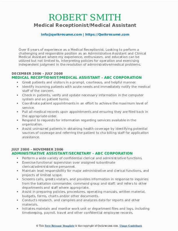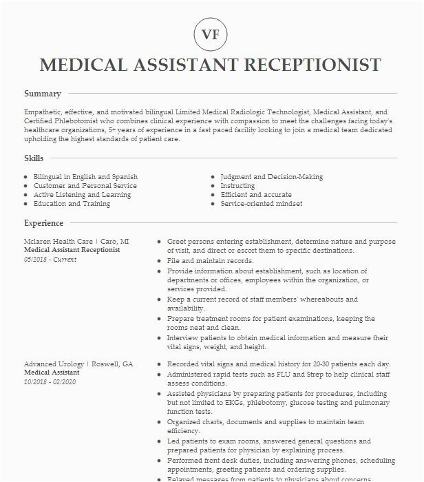 9 photos of the Sample Resume for Medical assistant Receptionist