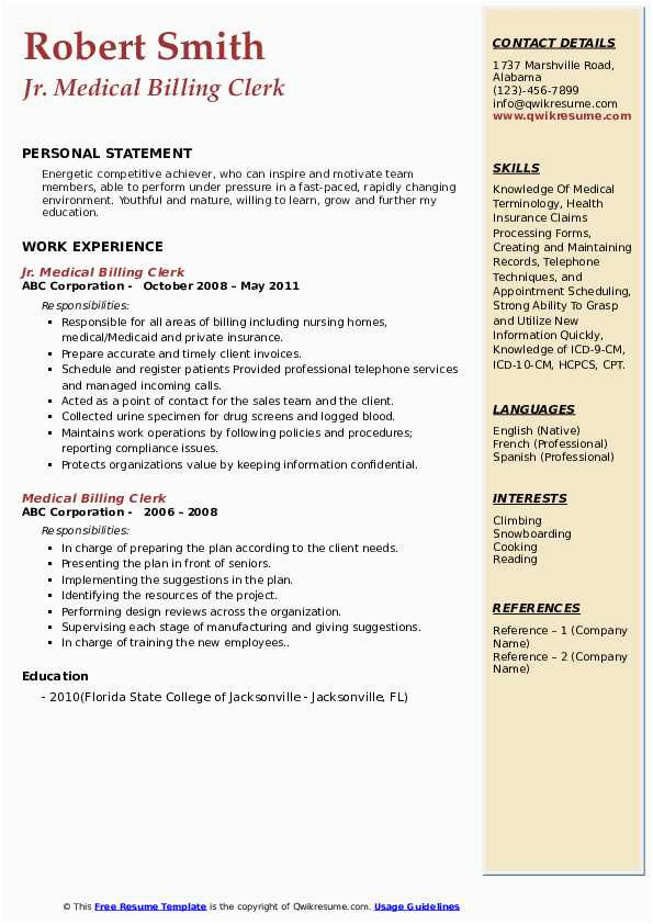 Warning: count(): Parameter must be an array or an object that implements Countable in /var/www/html/naturestudycentre.org/wp-content/themes/silegan-wordpress-theme/inc/themeson.class.php on line 625 Sample Resume for Medical Billing Clerk Medical Billing Clerk Resume Samples