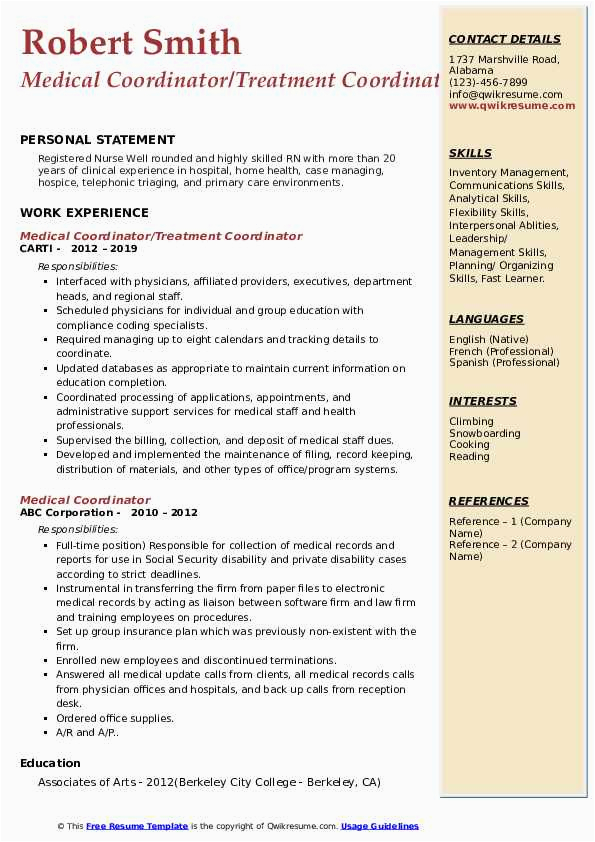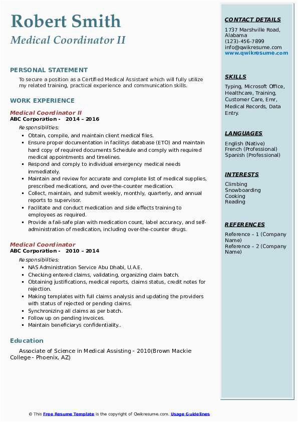 Sample Resume for Medical Care Coordinator Medical Coordinator Resume Samples and all other pictures, designs or photos on our website are copyright of their respective owners. we get our pictures from another websites, search engines and other sources to use as an inspiration for you. please contact us if you think we are infringing copyright of your pictures using contact page. we will be very happy to help you.