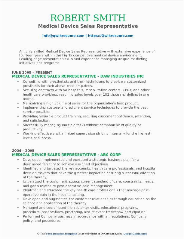 There are for that reason many options for you as you search for the absolute Sample Resume for Medical Device Sales Rep, and taking into consideration some hard performance and perseverance on your part, you will locate yourself taking into consideration a first-class resume in no time, and hopefully, a first-class employer, as well!. For more instruction on resumes or for a Sample Resume for Medical Device Sales Rep checkout this recommended websites.