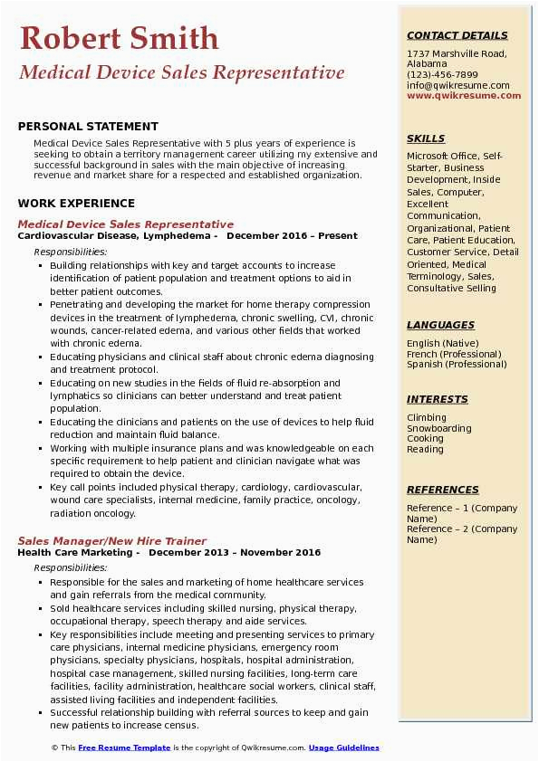Medical Device Sales Representative Resume Samples