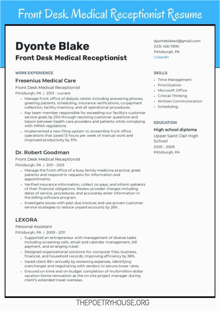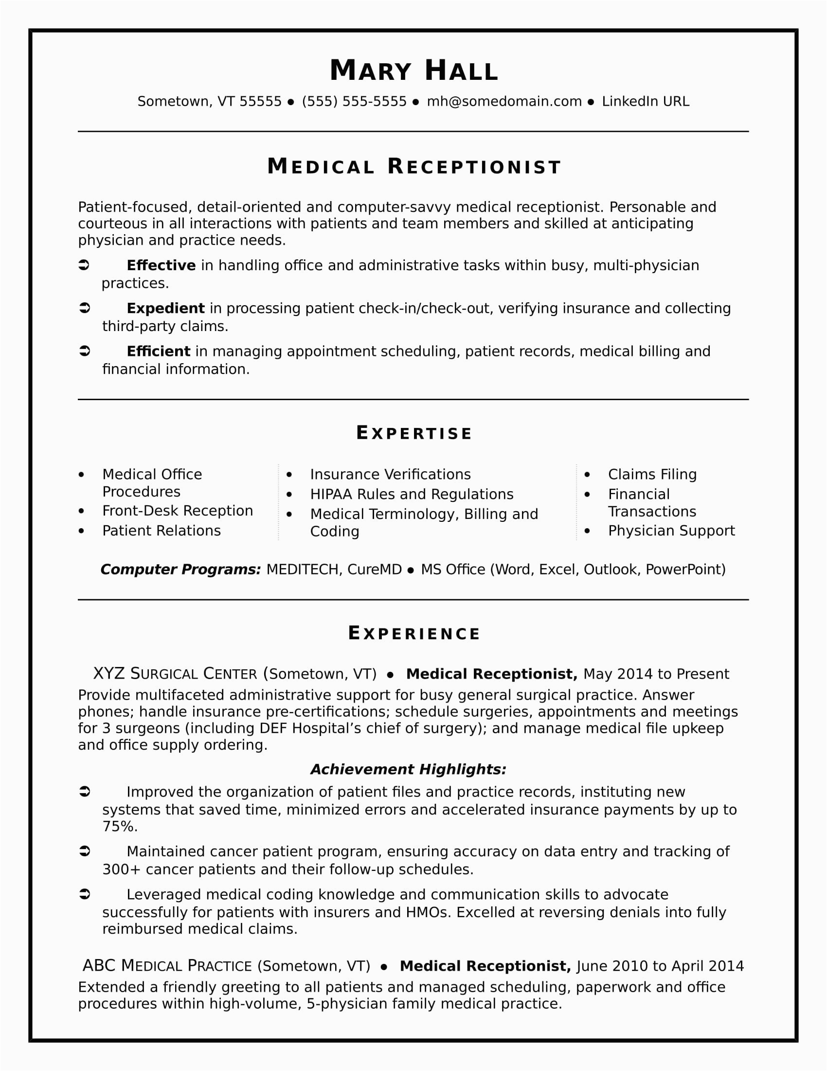 Sample Resume for Medical Receptionist with Experience Medical Receptionist Resume [sample for Download]