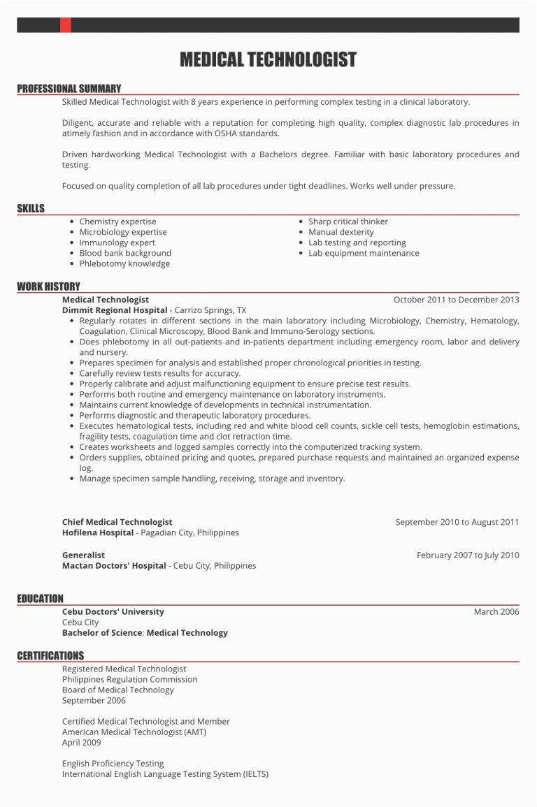 However, these are not your solitary options for locating Sample Resume for Medical Technologist In the Philippines. Your assistant professor or academic circles will most assuredly have more than one resume template that you can use, and will be happy to encourage you. simply head beyond to their Placement Office and you will have a template in no time. After all, it is their job to put up to you locate employment, and as soon as you are thriving and a satisfied and usefully employed former student, it is in addition to a feather in their cap.