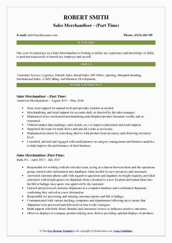 Merchandiser Job Description Resume Beautiful Sales