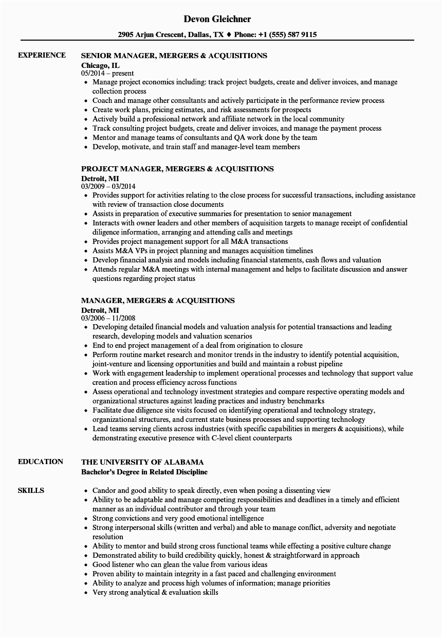 9 photos of the Sample Resume for Mergers and Acquisitions