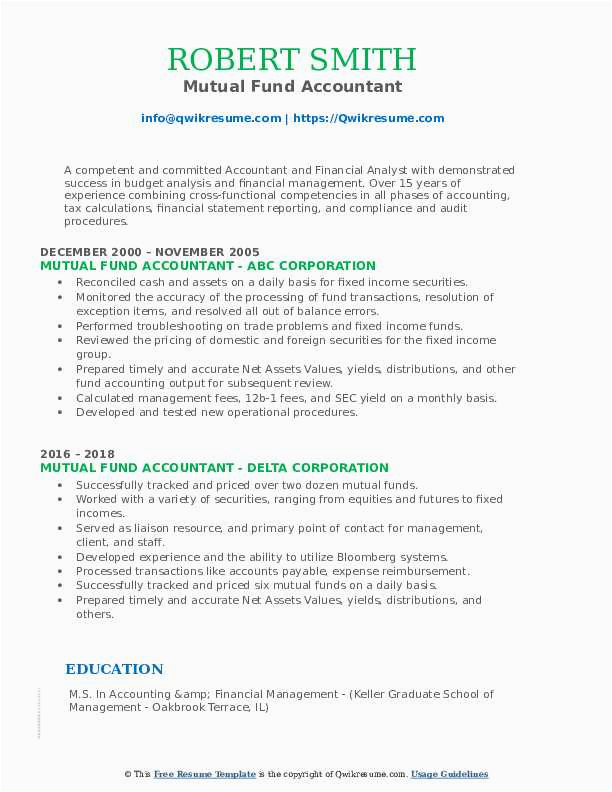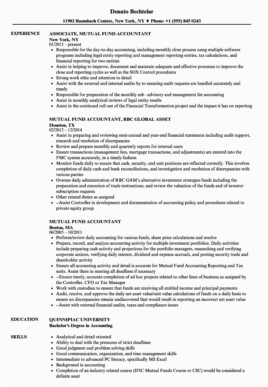 Mutual Fund Accountant Resume Samples