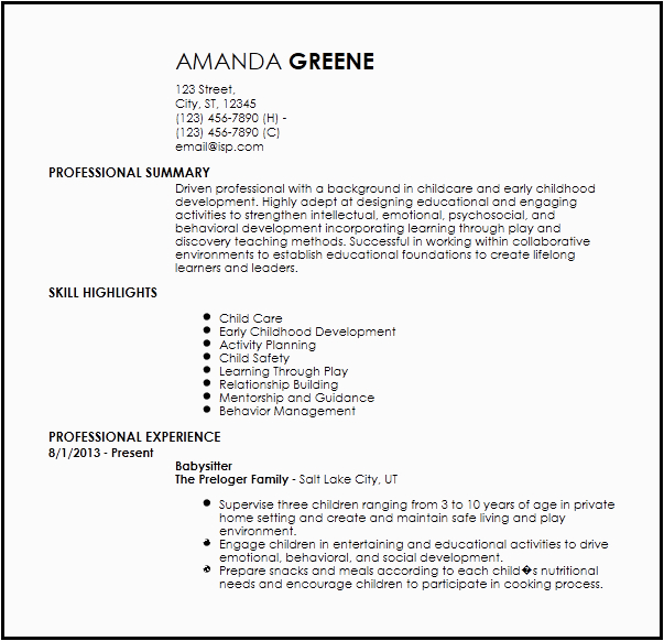 in the manner of you are searching for the absolute job, you will of course desire to put your best foot tackle as soon as an fabulous and well-formatted resume. One mannerism of assuring that you have such a resume is to download a Sample Resume for Nanny In Canada. These templates can find the money for you in the same way as the true resume you are looking for or understandably use them as a guide to make your own.