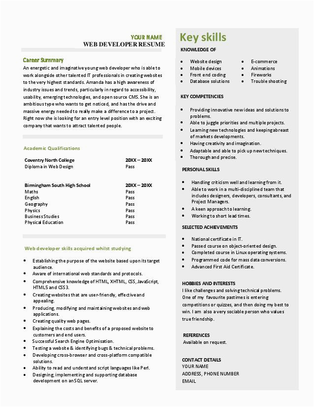Sample Resume For Web Developer Fresher BEST RESUME EXAMPLES