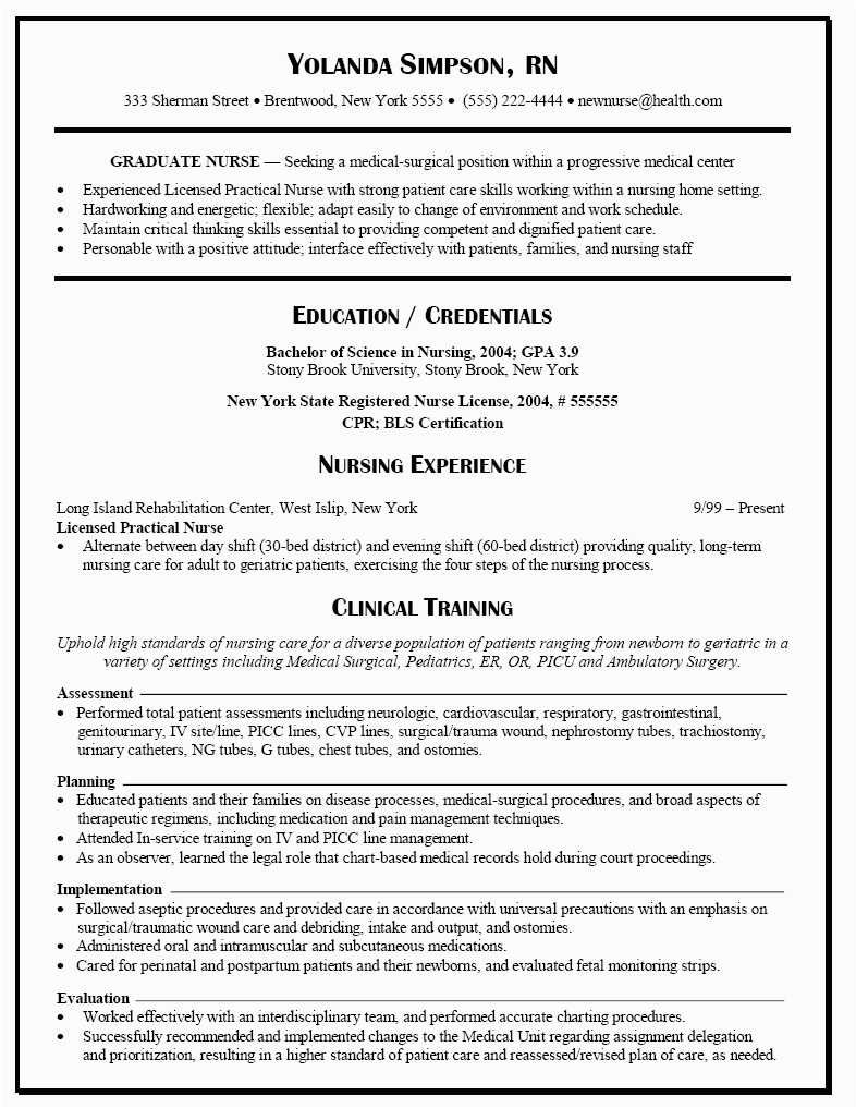 9 photos of the Sample Resume for New Graduate Lpn Nurse