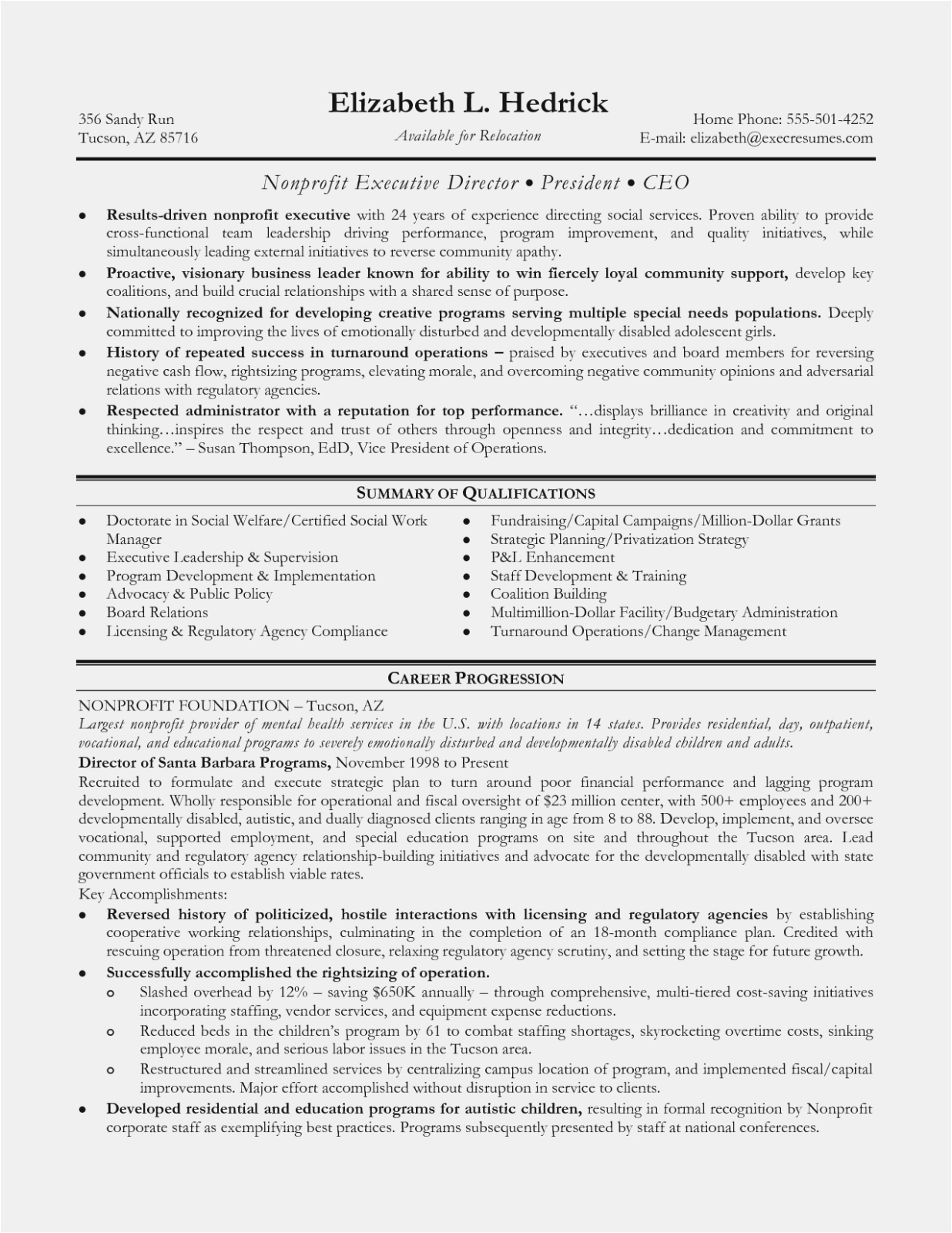 Taking into account you are searching for the absolute job, you will of course desire to put your best foot speak to like an impressive and well-formatted resume. One way of assuring that you have such a resume is to download a sample resume for nonprofit executive director. These templates can manage to pay for you taking into consideration the precise resume you are looking for or suitably use them as a guide to make your own.