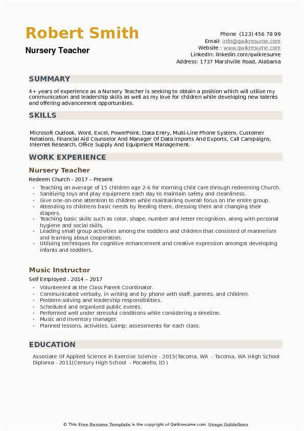There are consequently many options for you as you search for the absolute sample resume for nursery school teacher, and taking into account some hard undertaking and perseverance on your part, you will locate yourself in the manner of a first-class resume in no time, and hopefully, a first-class employer, as well!. For more counsel on resumes or for a sample resume for nursery school teacher checkout this recommended websites.