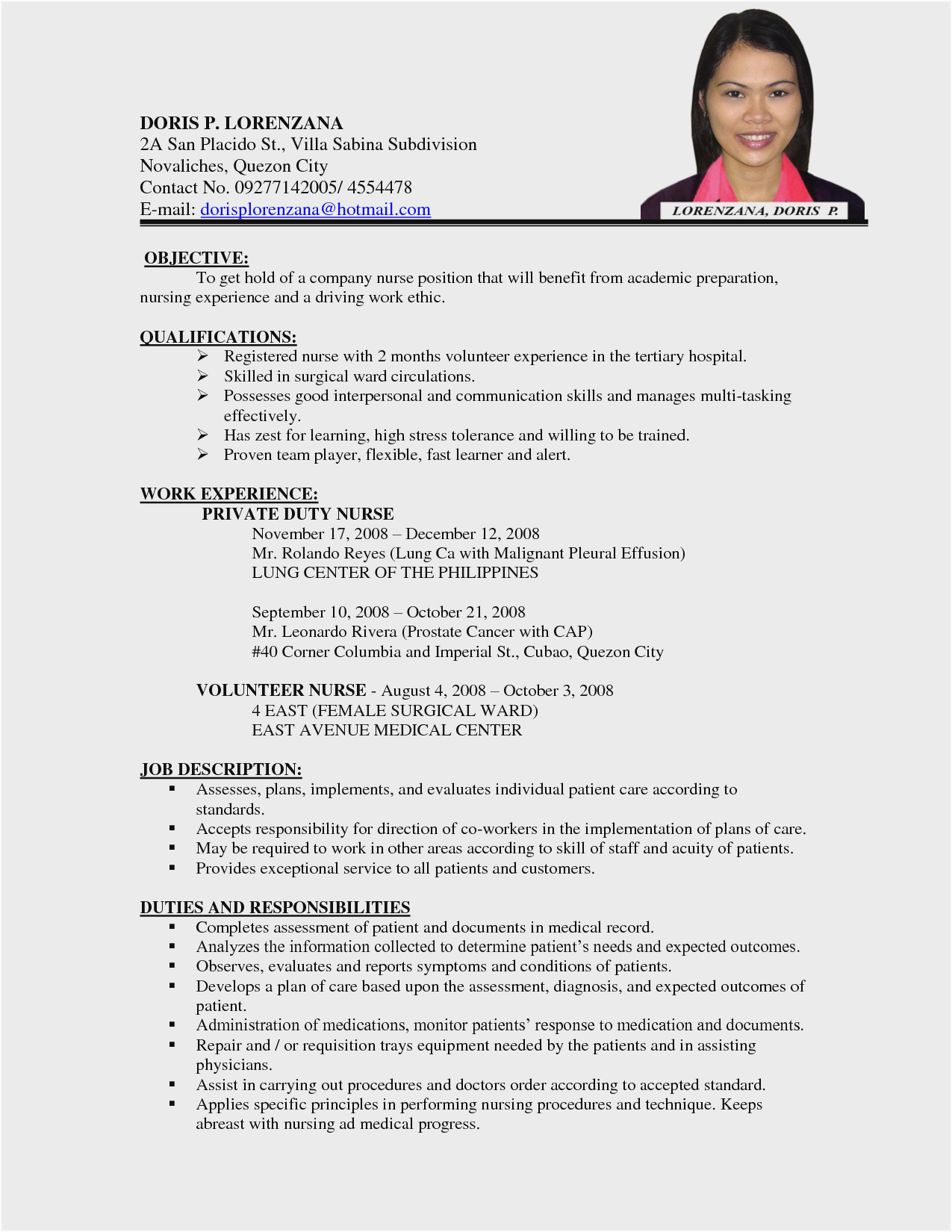 Next you are searching for the perfect job, you will of course want to put your best foot adopt as soon as an fabulous and well-formatted resume. One quirk of assuring that you have such a resume is to download a sample resume for nurses with experience in the philippines. These templates can present you once the exact resume you are looking for or helpfully use them as a lead to make your own.