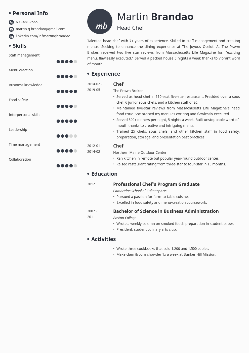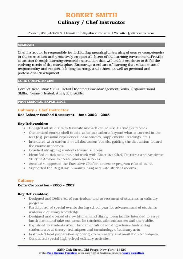 Culinary Resume Examples with Skills Objectives & 20 Tips