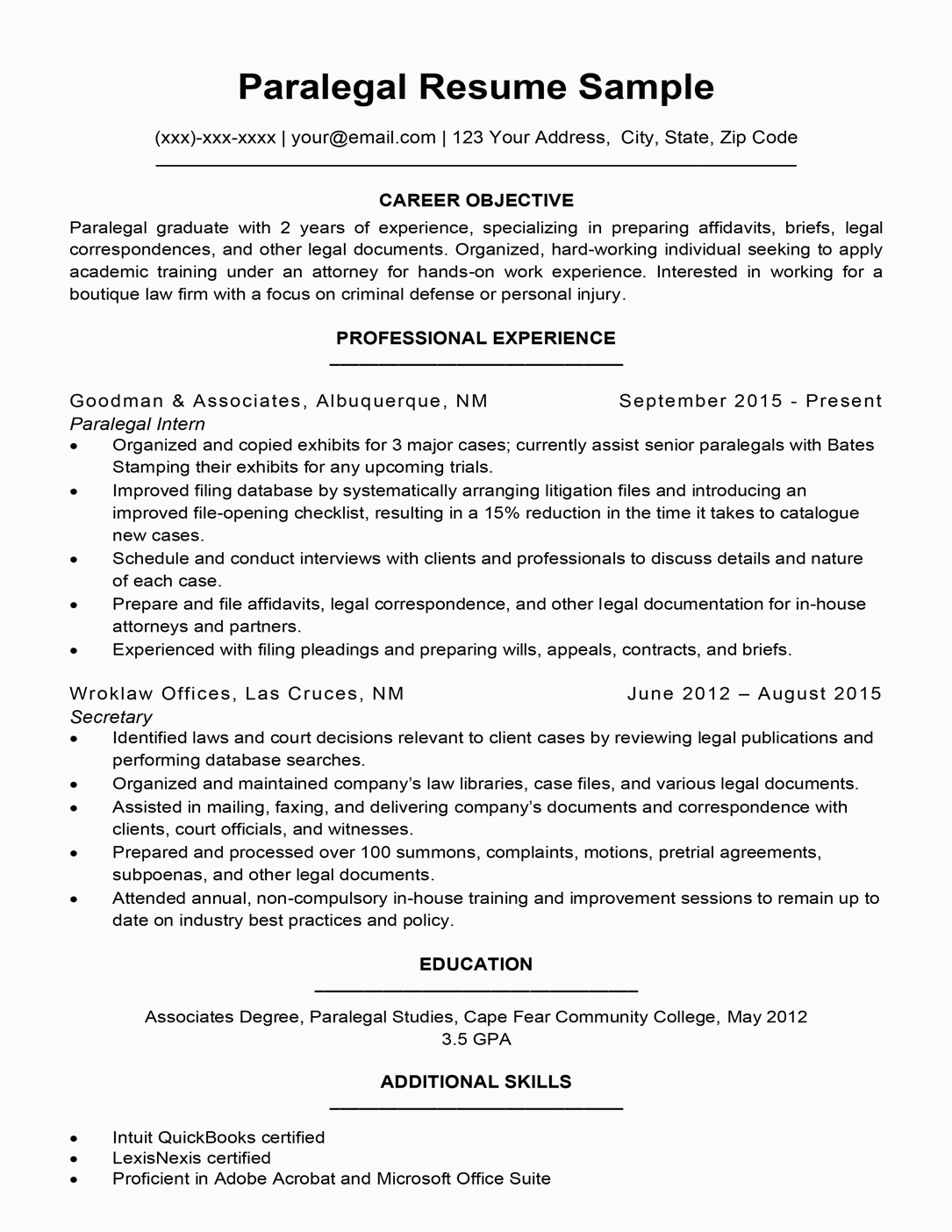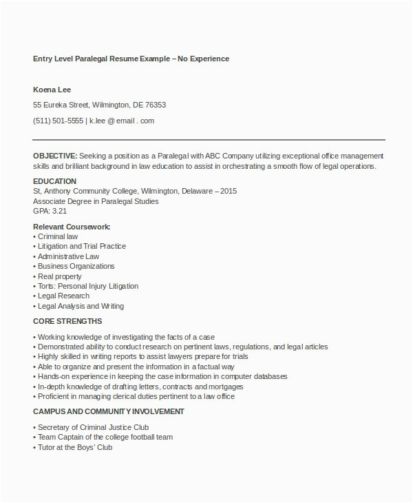 9 photos of the Sample Resume for Paralegal with No Experience