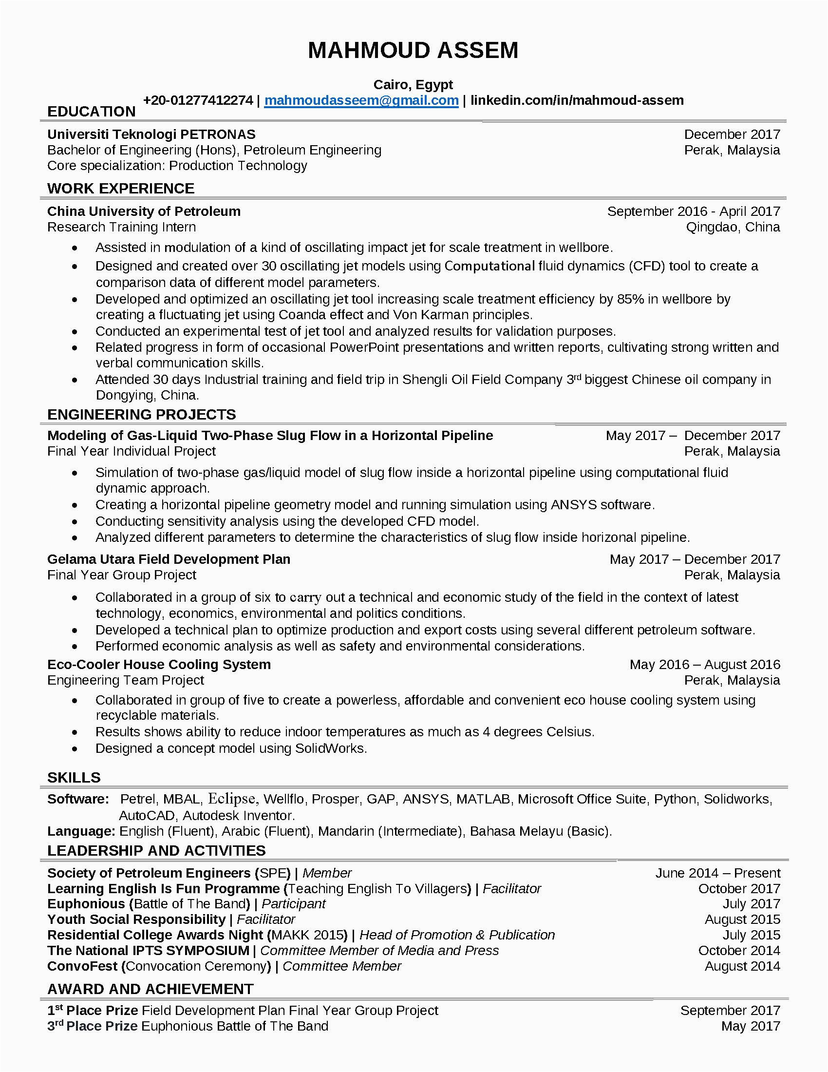 9 photos of the Sample Resume for Petroleum Engineering for International Graduate