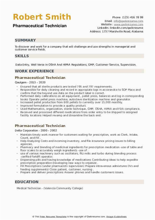 9 photos of the Sample Resume for Pharmaceutical Manufacturing Technician