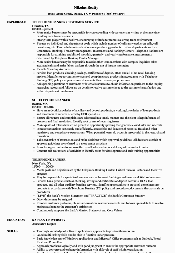 9 photos of the Sample Resume for Phone Banking Job