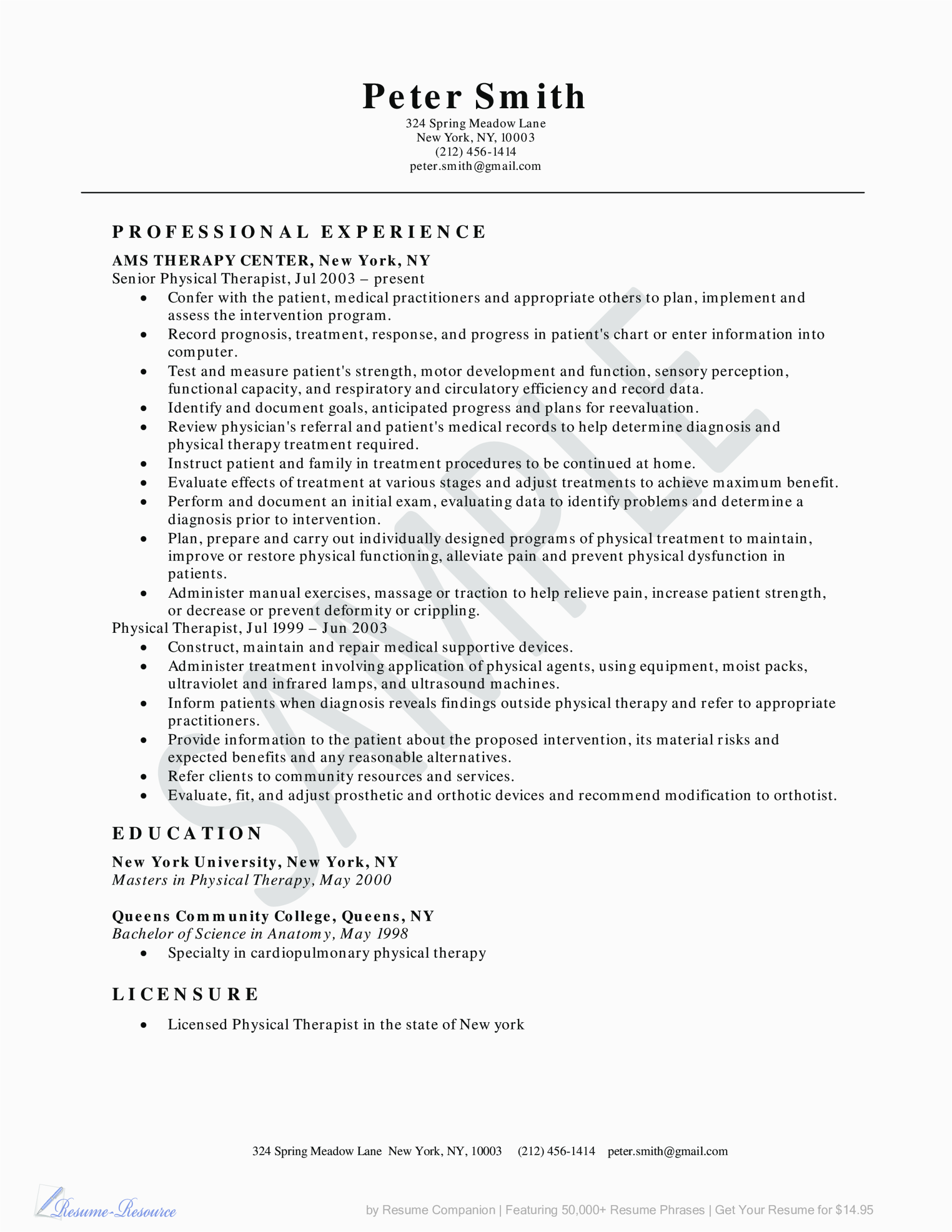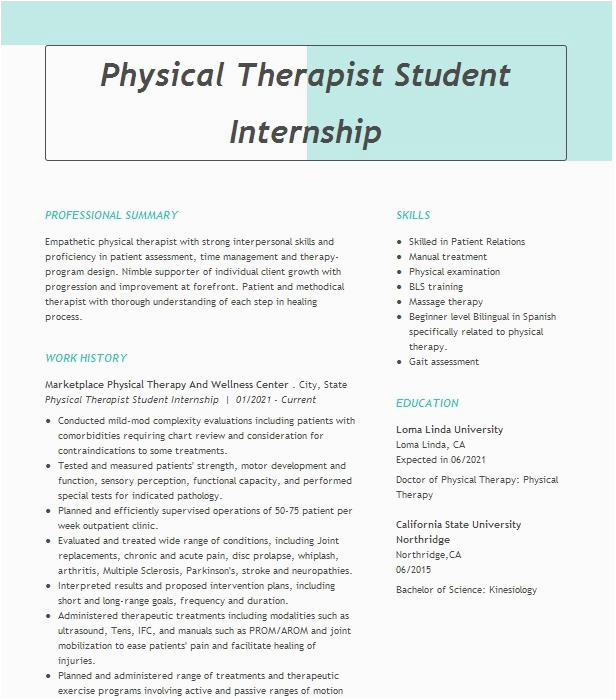 9 photos of the Sample Resume for Physical therapy Internship