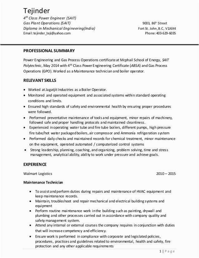 have new images for Sample Resume for Power Plant 1 Year Mechancal Maintainance Power Plant Technician Resume Samples? please contact us immediately.