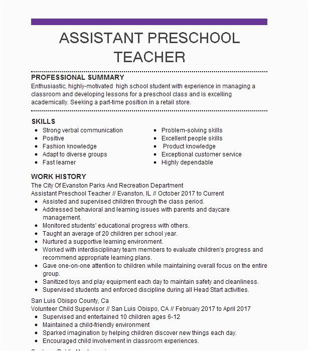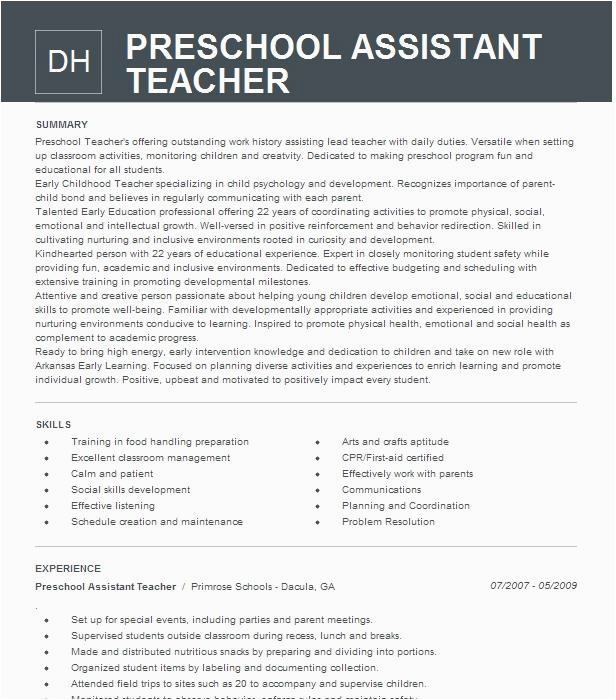 9 photos of the Sample Resume for Preschool Teacher assistant