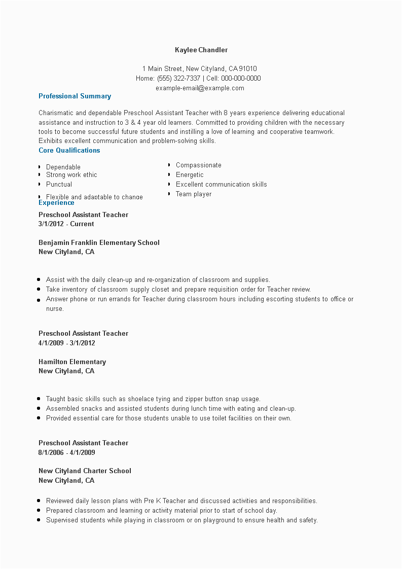 You can get several every other ideas and examples of how to format your resume afterward the help of a sample resume for preschool teacher assistant, and if you pick to utilize this method, there are as well as many ways to go approximately piece of legislation so.