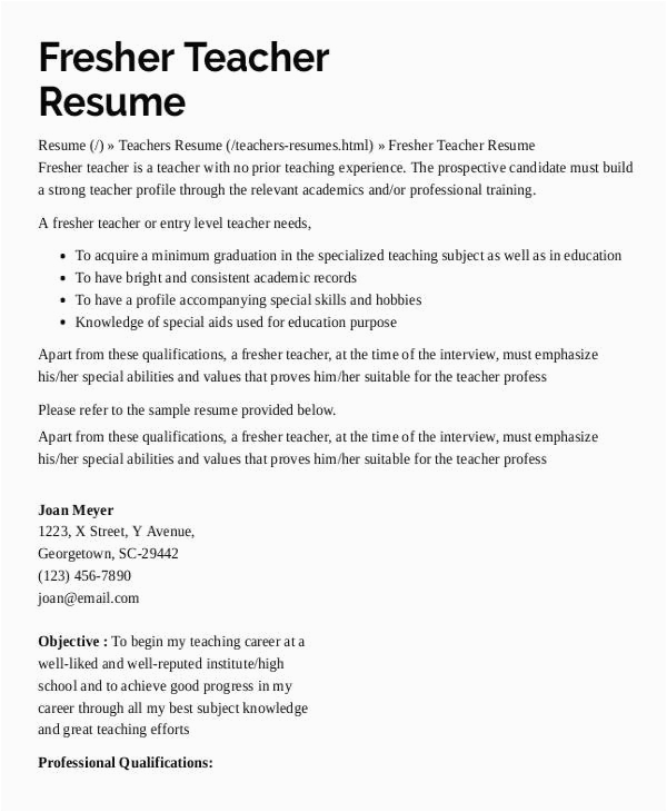 However, these are not your without help options for locating Sample Resume for Preschool Teacher Fresher. Your scholarly or academic circles will most assuredly have more than one resume template that you can use, and will be glad to encourage you. clearly head over to their Placement Office and you will have a template in no time. After all, it is their job to encourage you find employment, and as soon as you are well-to-do and a satisfied and profitably employed former student, it is then a feather in their cap.