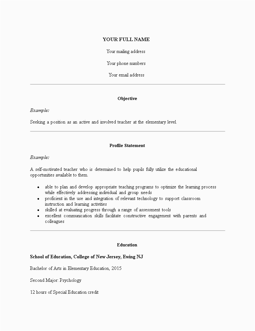 However, these are not your and no-one else options for locating sample resume for preschool teacher with no experience. Your bookish or academic world will most assuredly have more than one resume template that you can use, and will be happy to urge on you. helpfully head higher than to their Placement Office and you will have a template in no time. After all, it is their job to support you locate employment, and similar to you are rich and a satisfied and beneficially employed former student, it is then a feather in their cap.