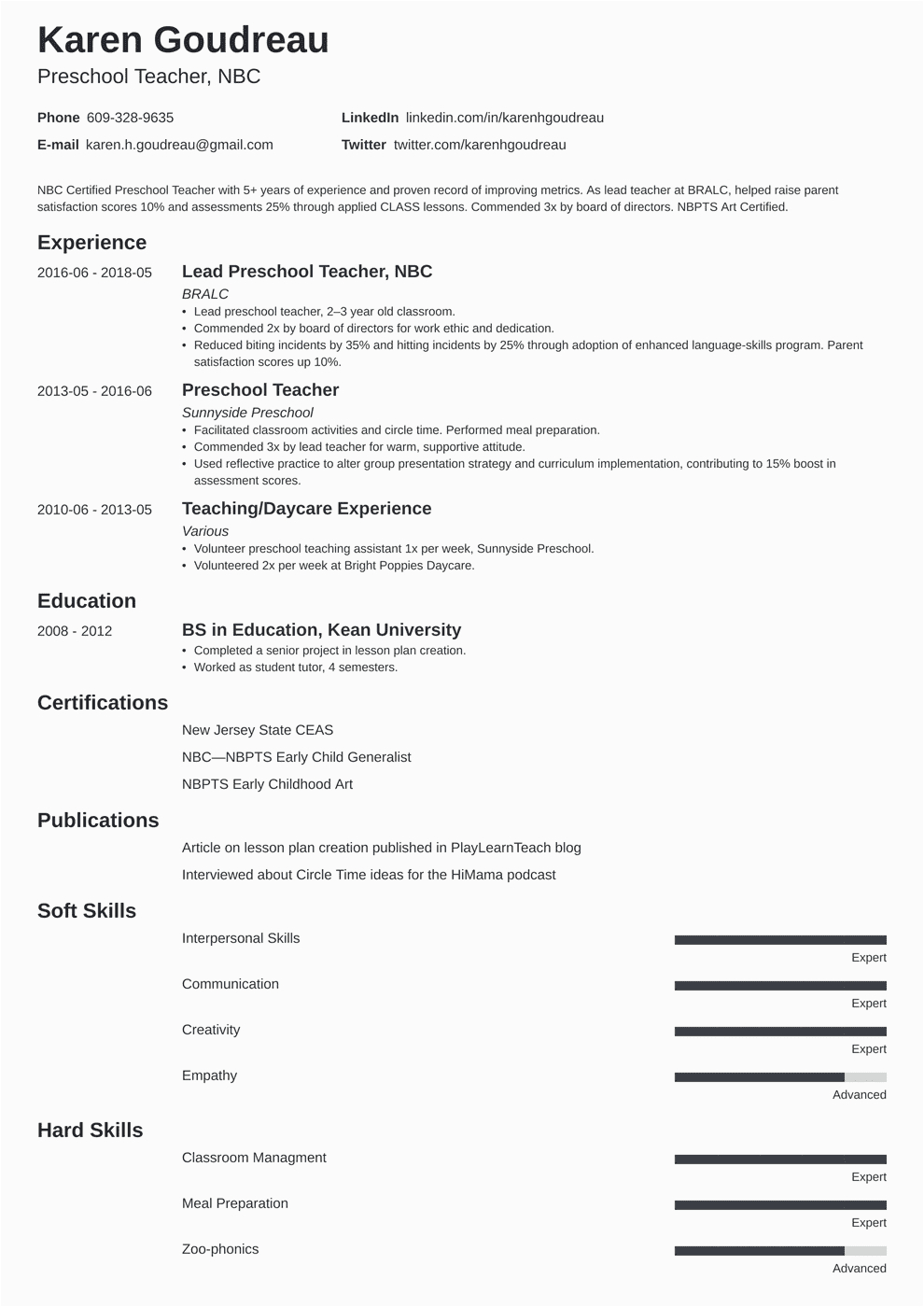 Preschool Teacher Resume No Experience How to create a
