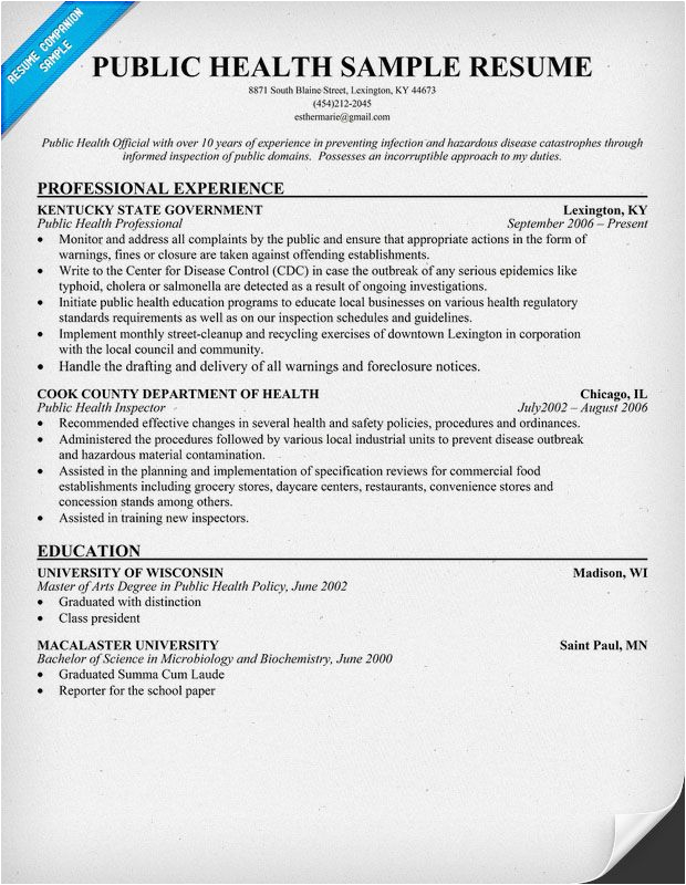 Public Health Professional Resume Examples Best Resume