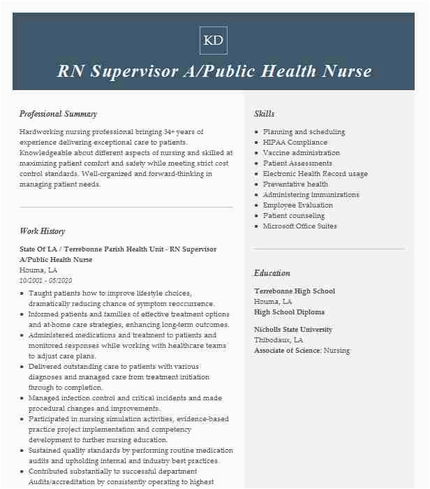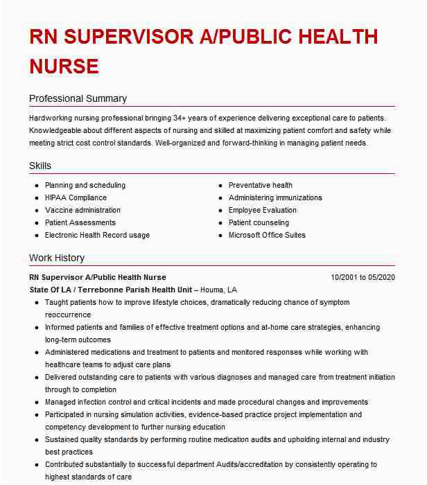 RN Supervisor A Public Health Nurse Resume Example State