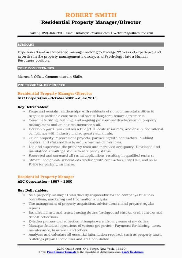 There are so many options for you as you search for the absolute sample resume for residential property manager, and in the manner of some difficult operate and perseverance on your part, you will locate yourself considering a first-class resume in no time, and hopefully, a first-class employer, as well!. For more instruction on resumes or for a sample resume for residential property manager checkout this recommended websites.