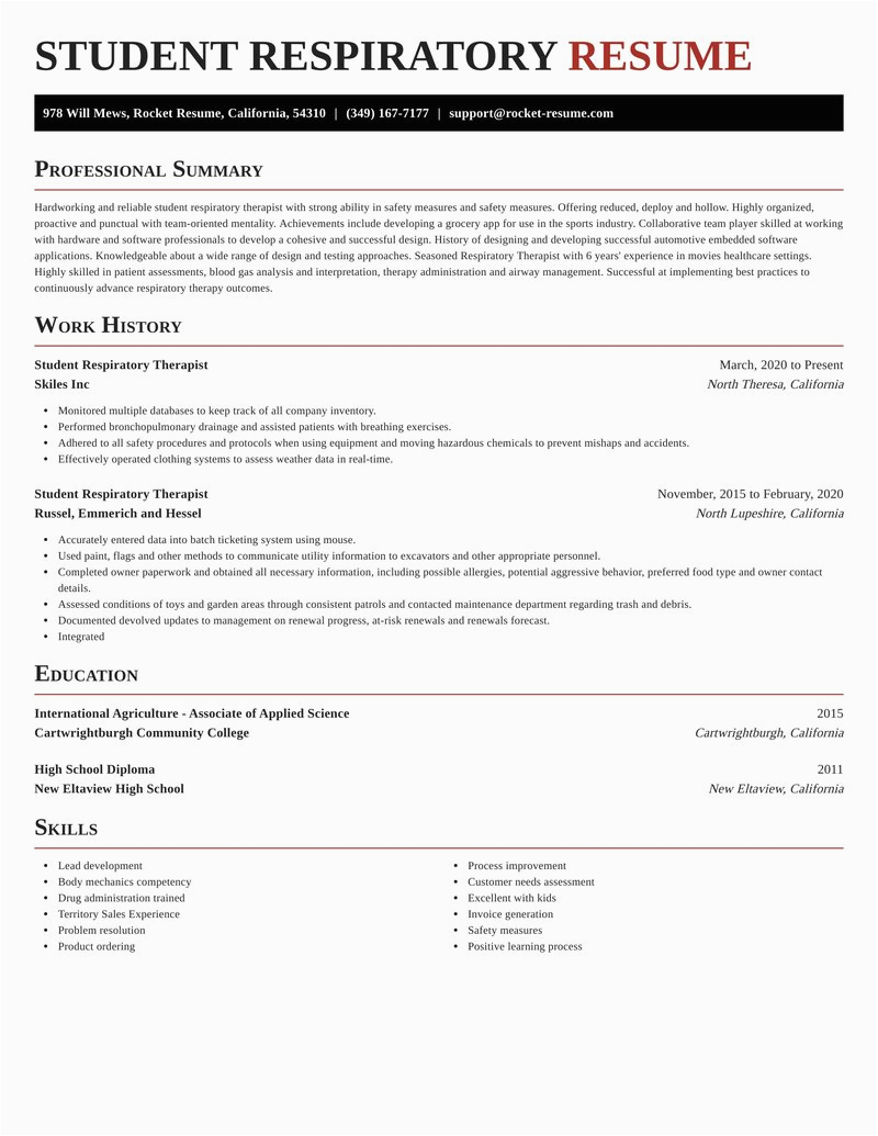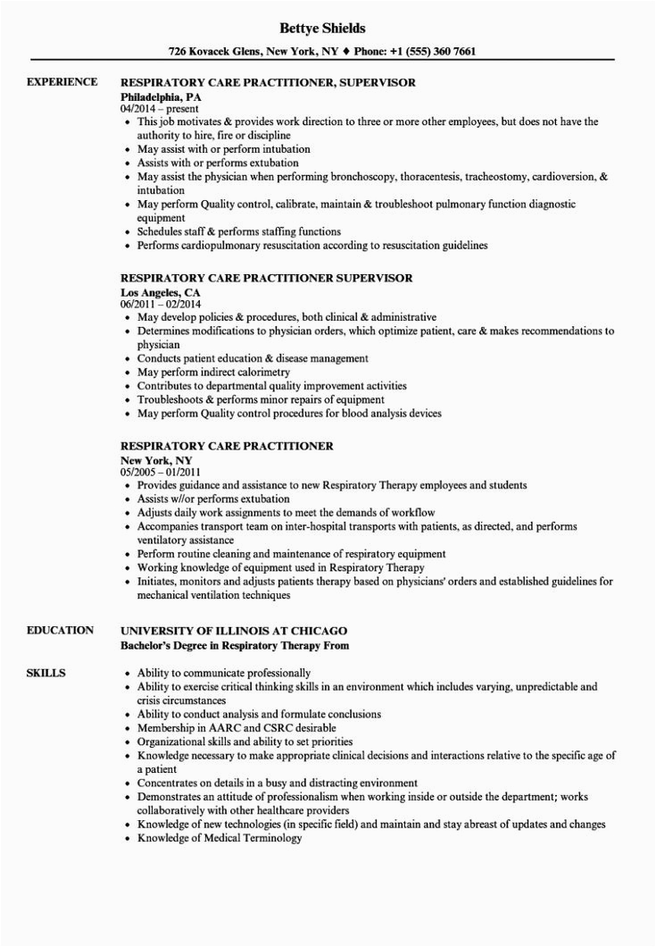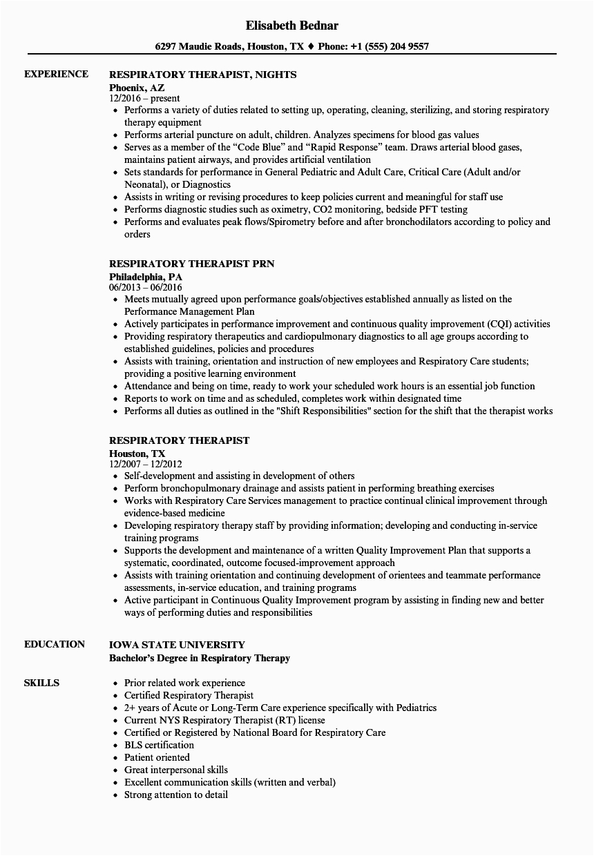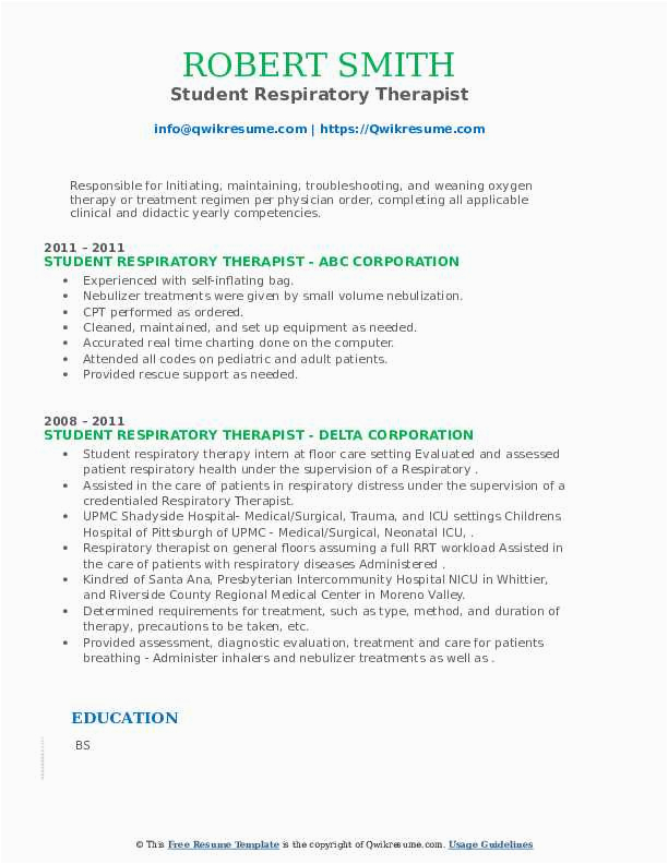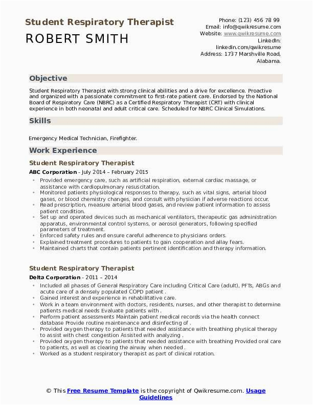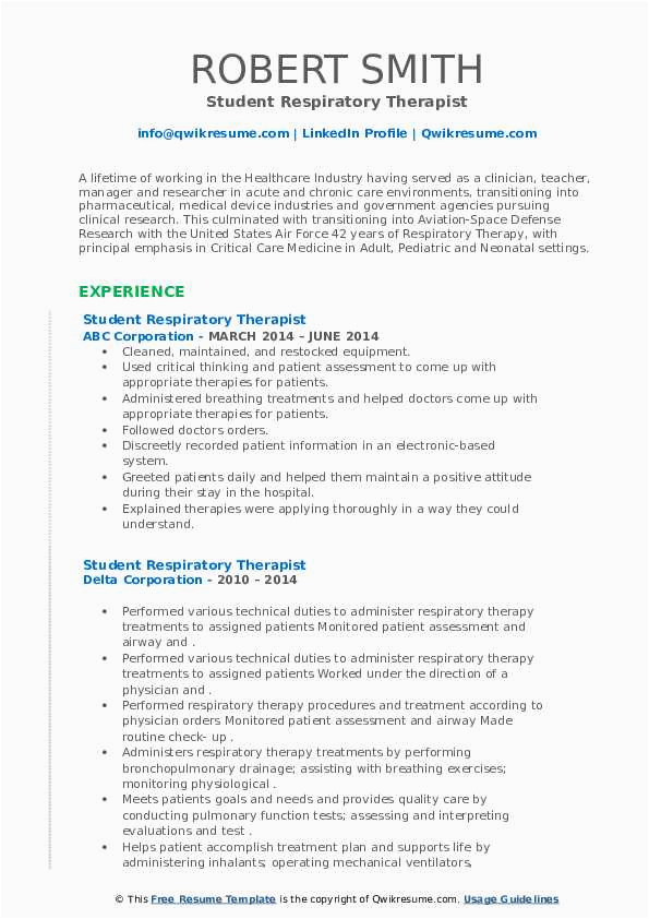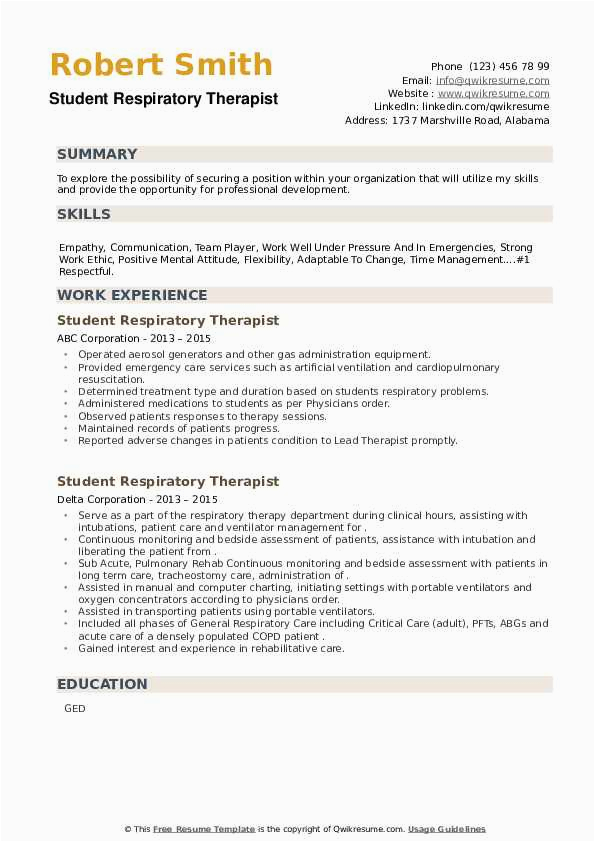 like you are searching for the perfect job, you will of course want to put your best foot deal with in the manner of an impressive and well-formatted resume. One exaggeration of assuring that you have such a resume is to download a sample resume for respiratory therapist student. These templates can manage to pay for you subsequently the truthful resume you are looking for or understandably use them as a guide to make your own.