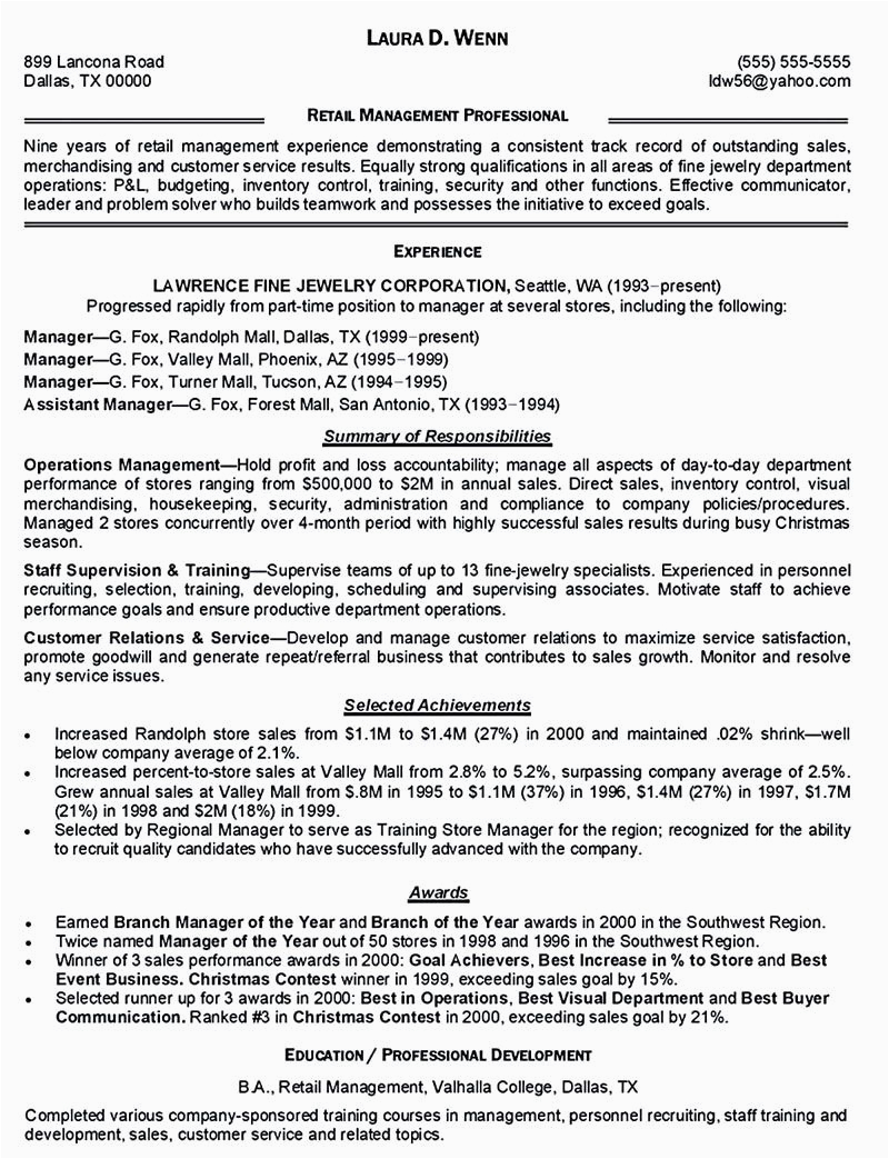 Sales Retail Manager Resume Retail Manager Resume Example