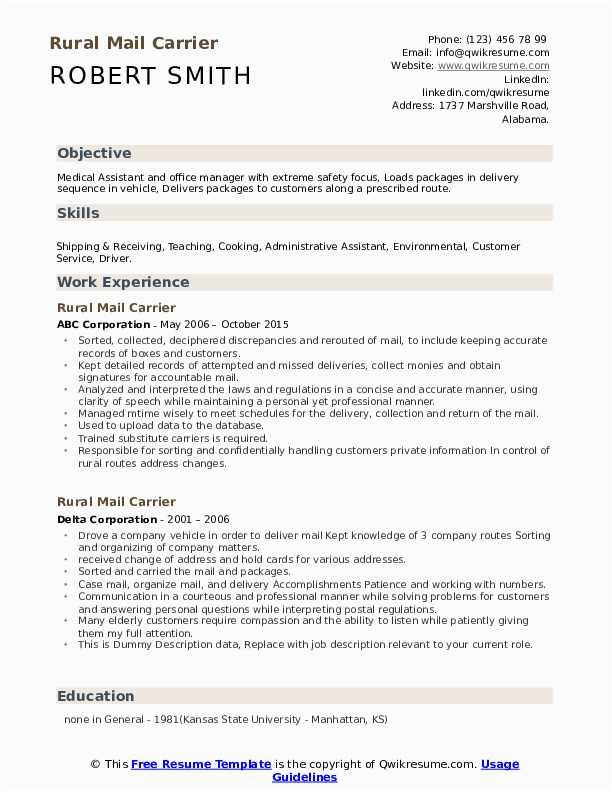 Sample Resume for Rural Mail Carrier Rural Mail Carrier Resume Example Pany Name fort Wayne Indiana and all other pictures, designs or photos on our website are copyright of their respective owners. we get our pictures from another websites, search engines and other sources to use as an inspiration for you. please contact us if you think we are infringing copyright of your pictures using contact page. we will be very happy to help you.