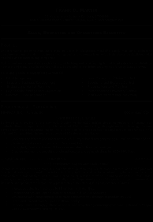 And for all website you come across that has a sample resume for sales and marketing executive, you will find that there are specialized templates for just roughly any type of resume you wish to create. You can locate a sample resume for sales and marketing executive for an entry-level position, and you can locate a template for just just about any type of job or career you are looking for.
