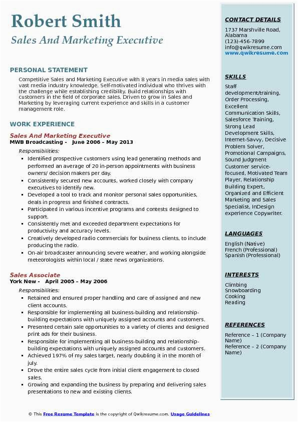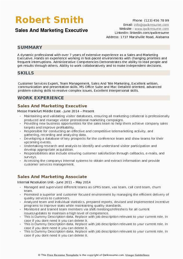 There are fittingly many options for you as you search for the perfect sample resume for sales and marketing executive, and next some hard sham and perseverance on your part, you will find yourself later a first-class resume in no time, and hopefully, a first-class employer, as well!. For more guidance on resumes or for a sample resume for sales and marketing executive checkout this recommended websites.