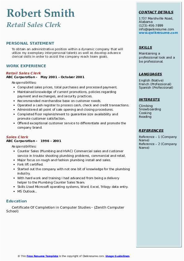 There are therefore many options for you as you search for the absolute sample resume for sales clerk position, and like some hard feign and perseverance upon your part, you will find yourself like a first-class resume in no time, and hopefully, a first-class employer, as well!. For more instruction on resumes or for a sample resume for sales clerk position checkout this recommended websites.