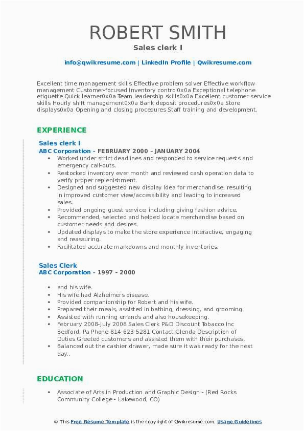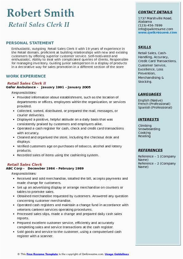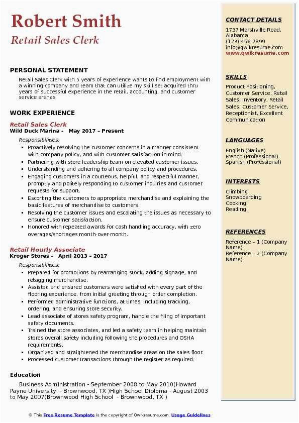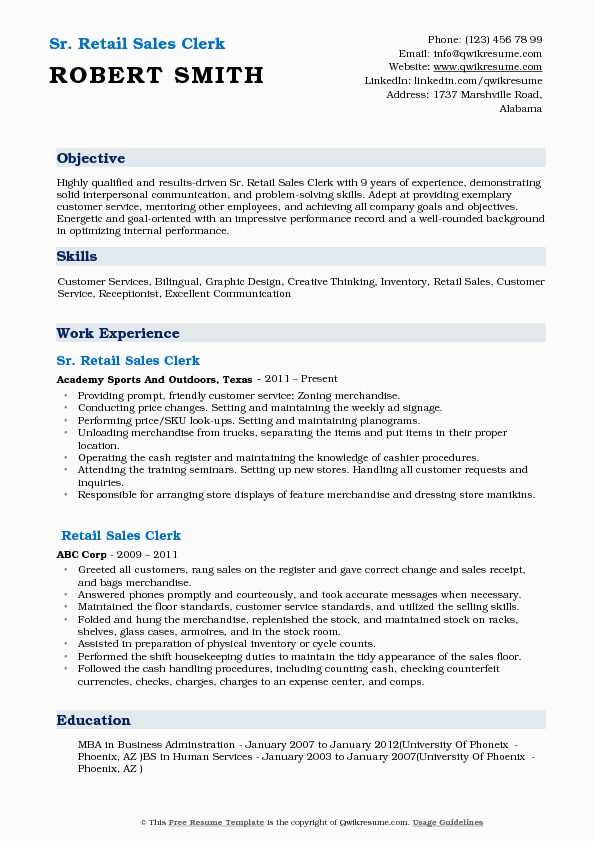 Sample Resume for Sales Clerk with Experience Retail Sales Clerk Resume Samples and all other pictures, designs or photos on our website are copyright of their respective owners. we get our pictures from another websites, search engines and other sources to use as an inspiration for you. please contact us if you think we are infringing copyright of your pictures using contact page. we will be very happy to help you.