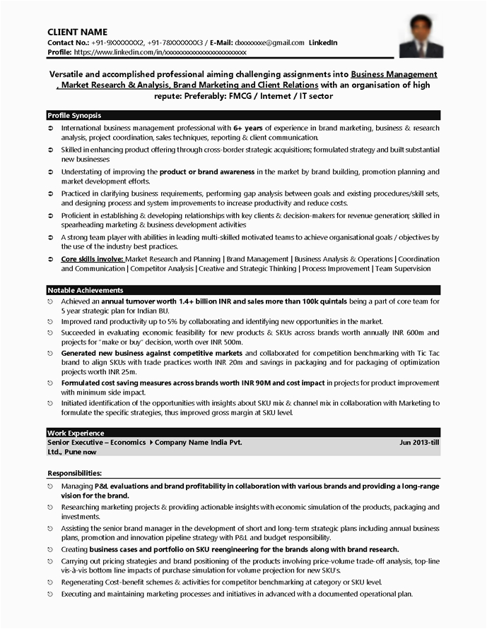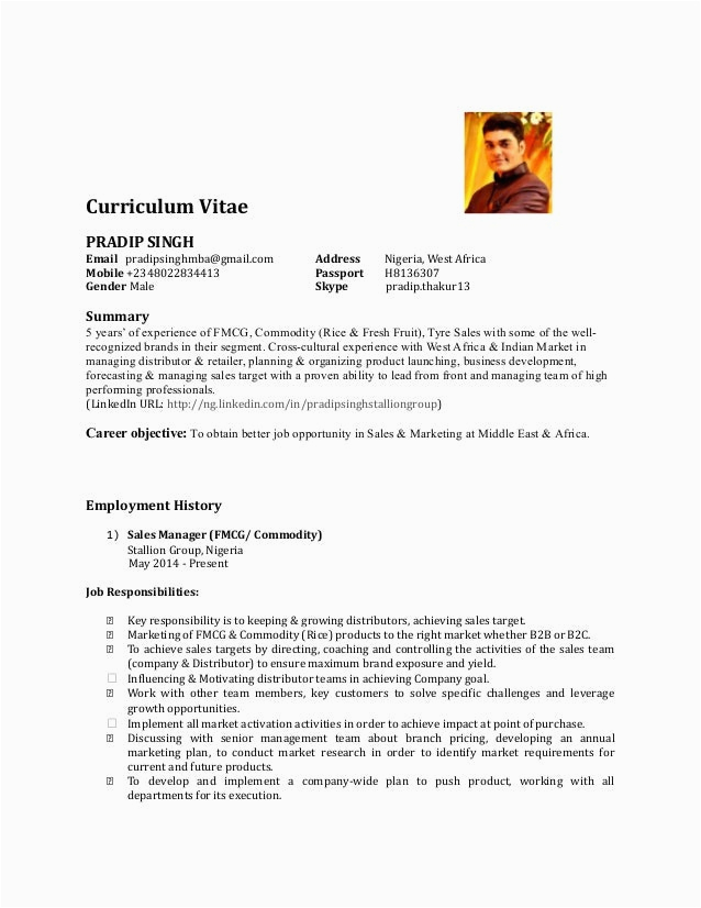 9 photos of the Sample Resume for Sales Manager In Fmcg