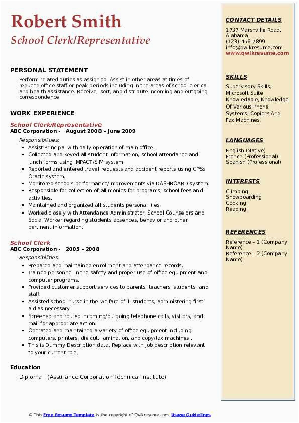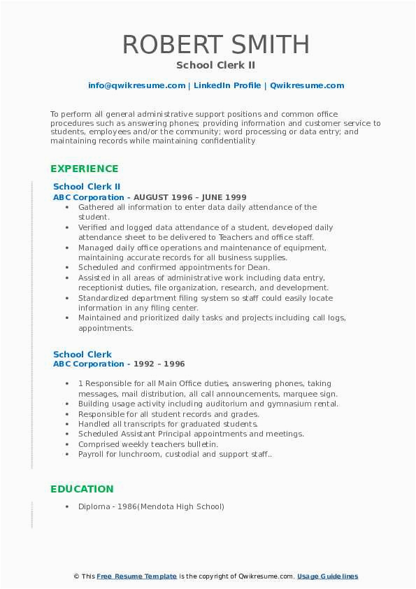 Warning: count(): Parameter must be an array or an object that implements Countable in /var/www/html/naturestudycentre.org/wp-content/themes/silegan-wordpress-theme/inc/themeson.class.php on line 625 Sample Resume for School Clerical Position School Clerk Resume Samples