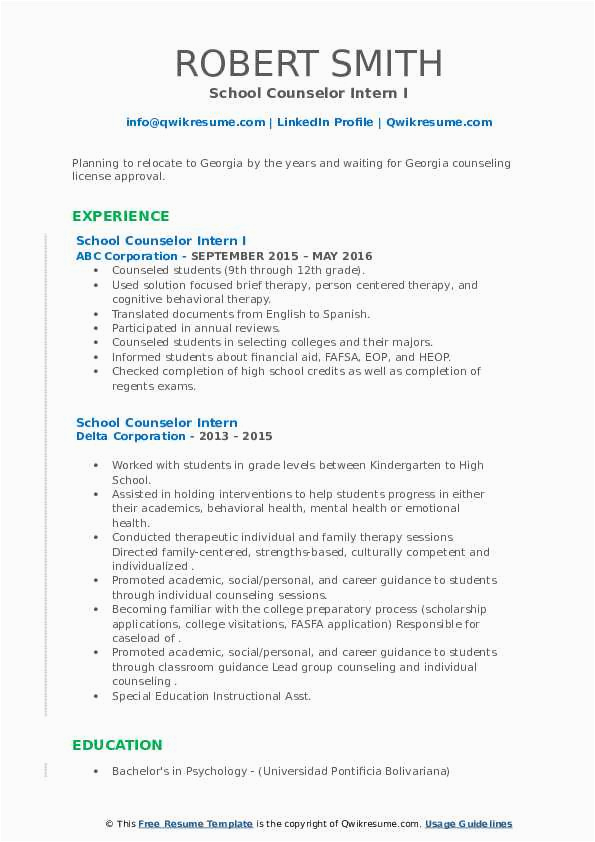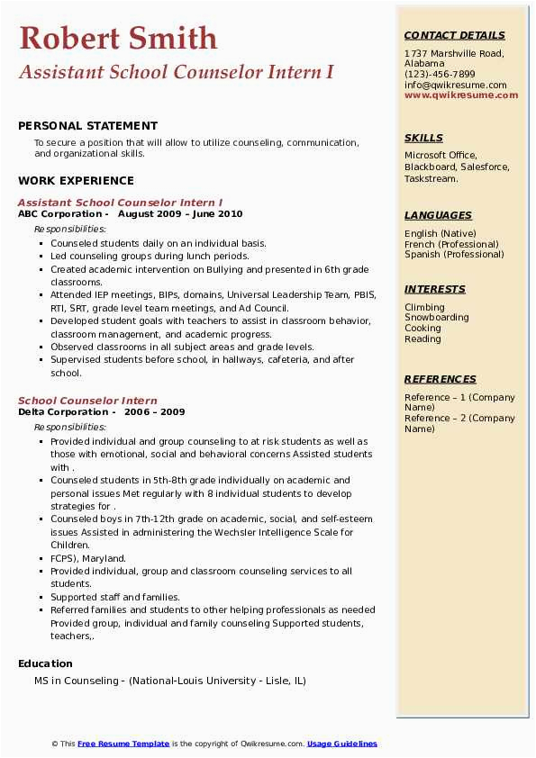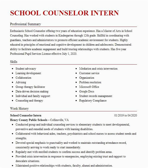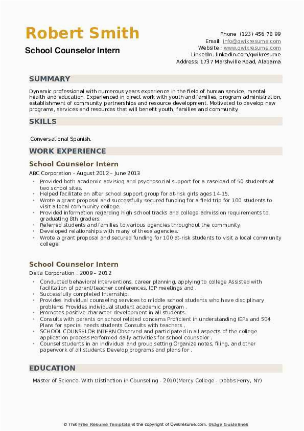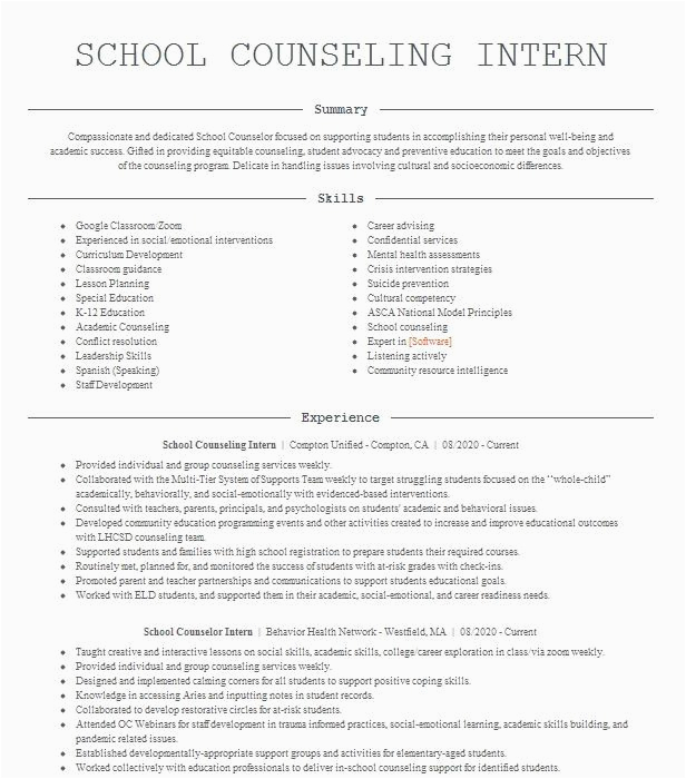 9 photos of the Sample Resume for School Counseling Intern